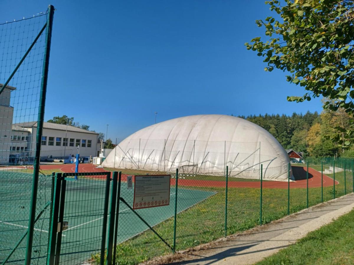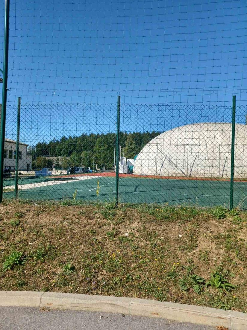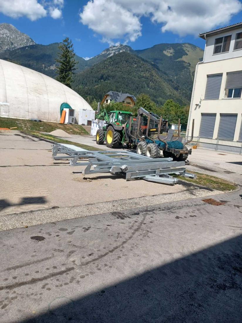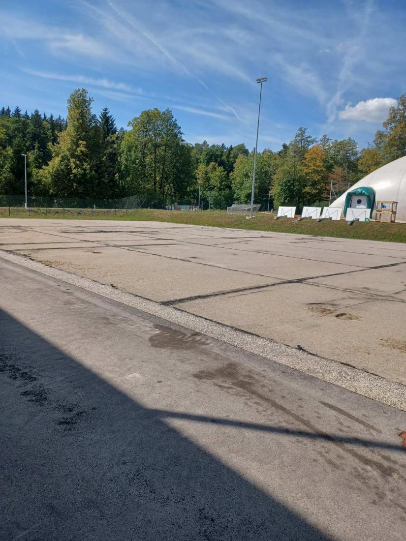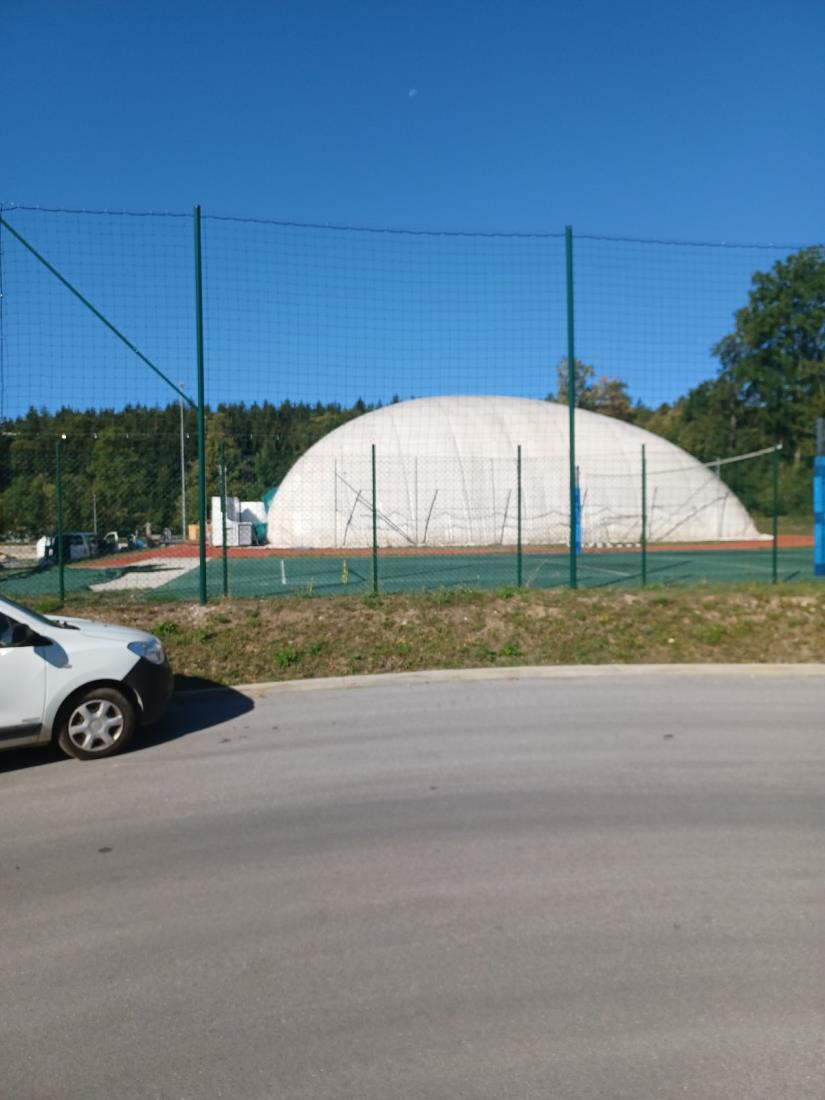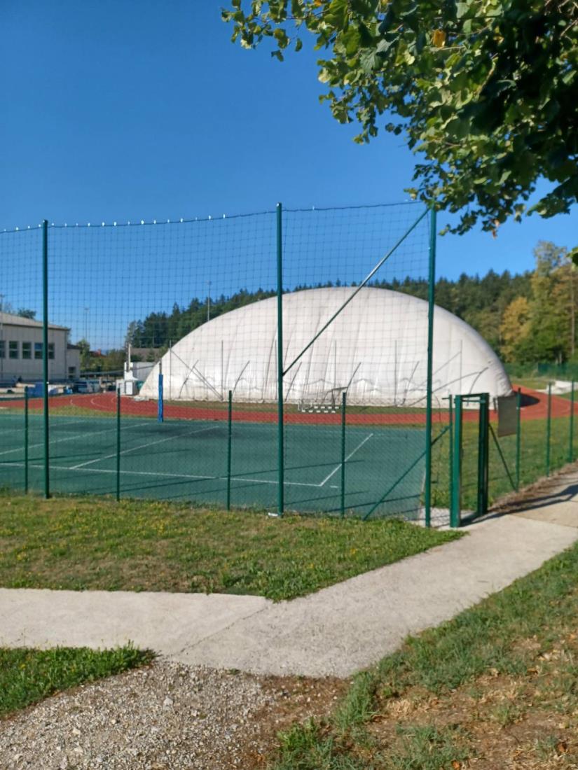 Na košarkarskem igrišču pri osnovni šoli že stoji napihljivi šotor, ki bo nadomeščal telovadnico za čas gradnje nove športne dvorane.