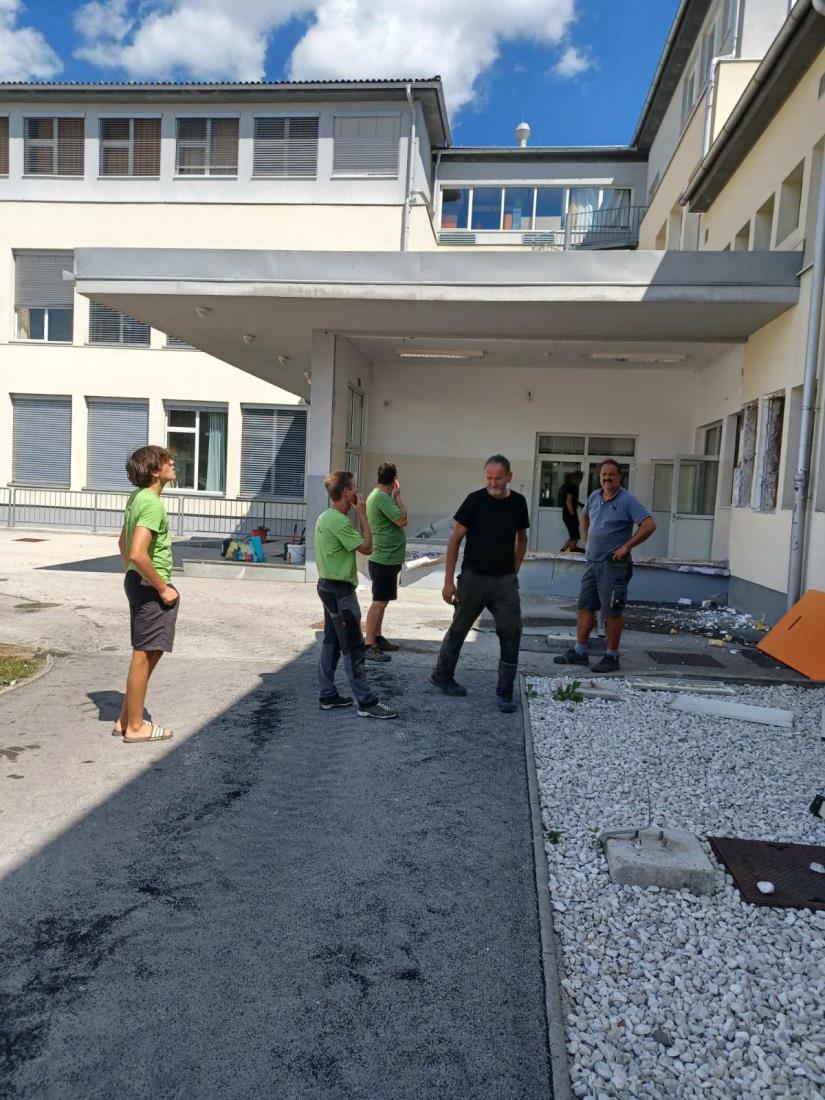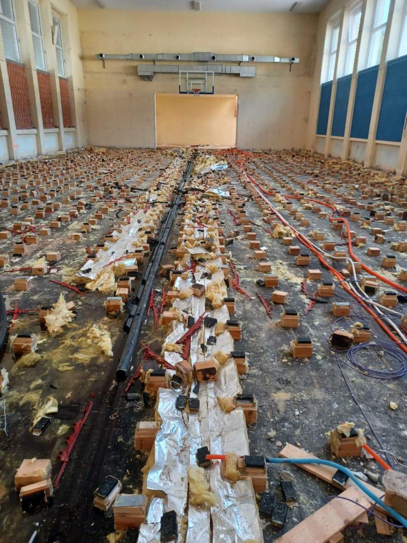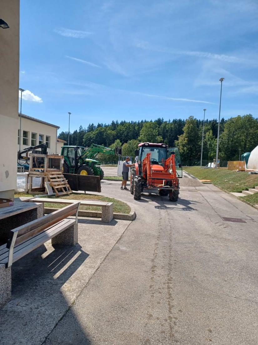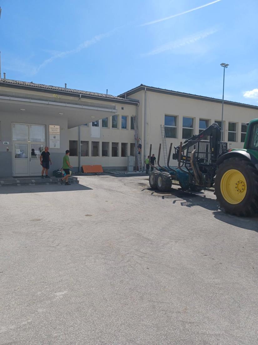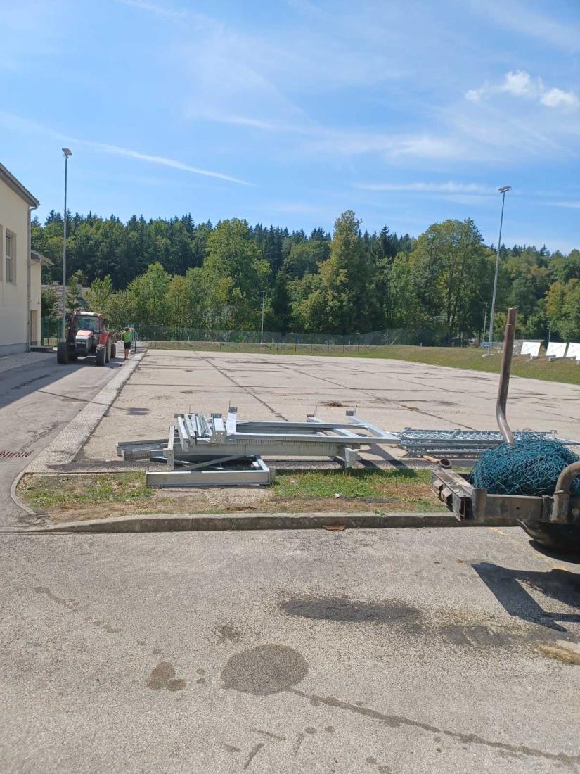 Prostovoljci pod vodstvom župana in podžupana zaključujejo predvidena dela, telovadnica je danes že skoraj prazna. Prestavila se je umetna trava in kovinska ograja iz nogometnega igrišča na novo lokacijo v športni park, kjer so prav tako pridni prostovoljci z županom pretekli vikend pripravili podlago za postavitev le te.