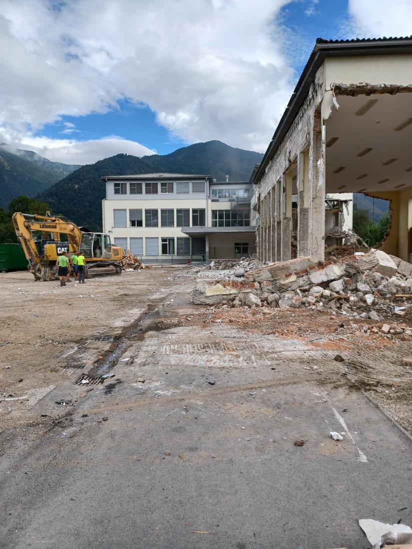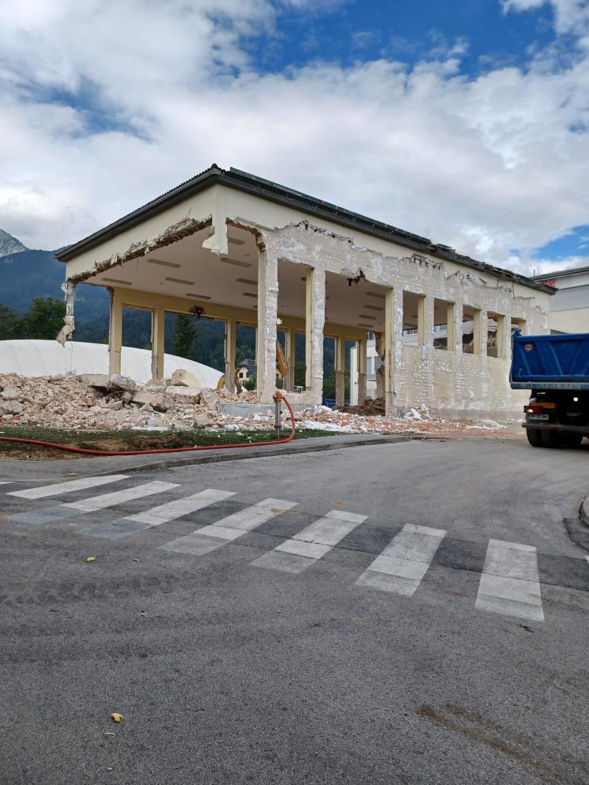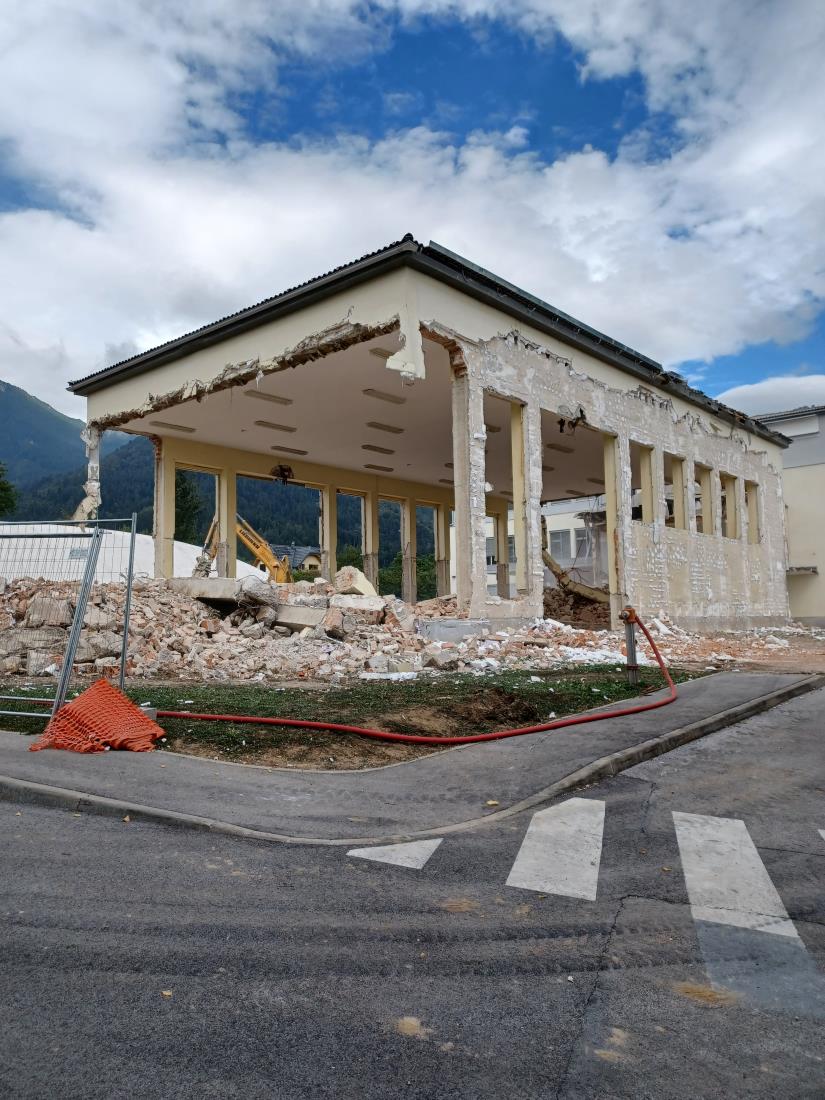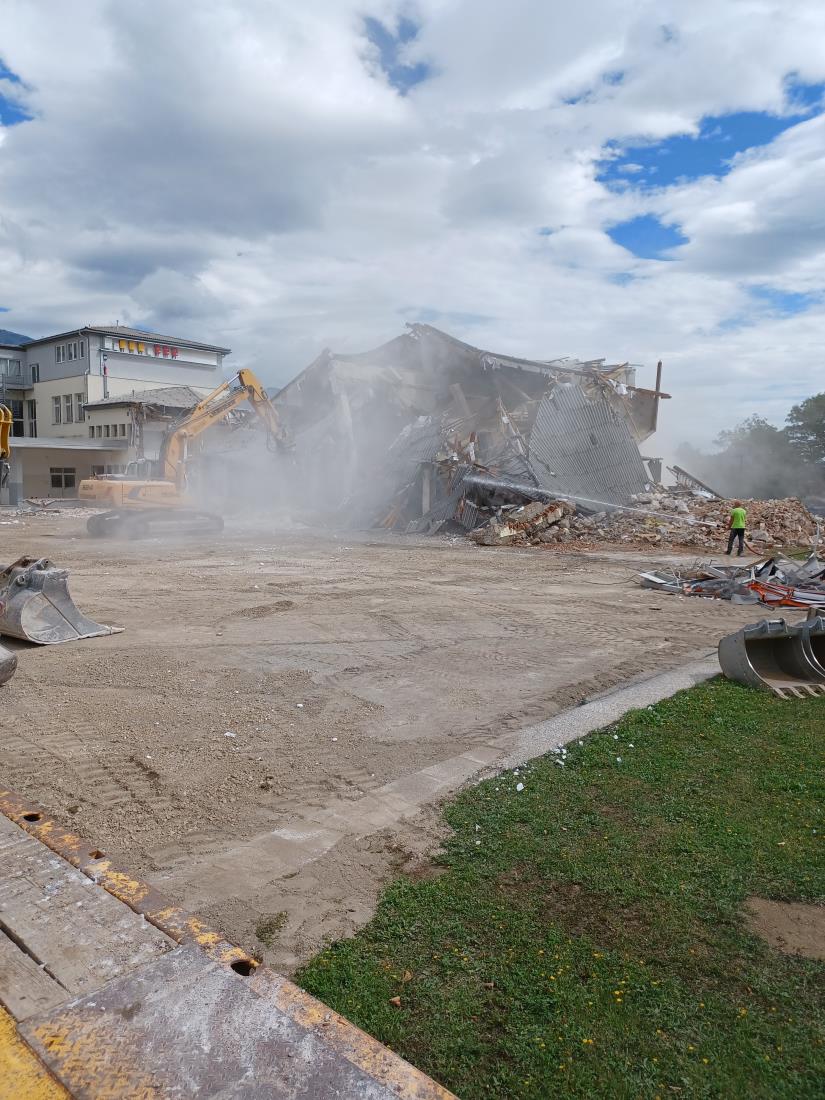 Včeraj je pogodbeni izvajalec porušil telovadnico pri šoli. Sledi odvoz ruševin, zato bo nekoliko povečan promet s kamioni skozi naselje Preddvor. Do 31. avgusta bodo dela zaključena.