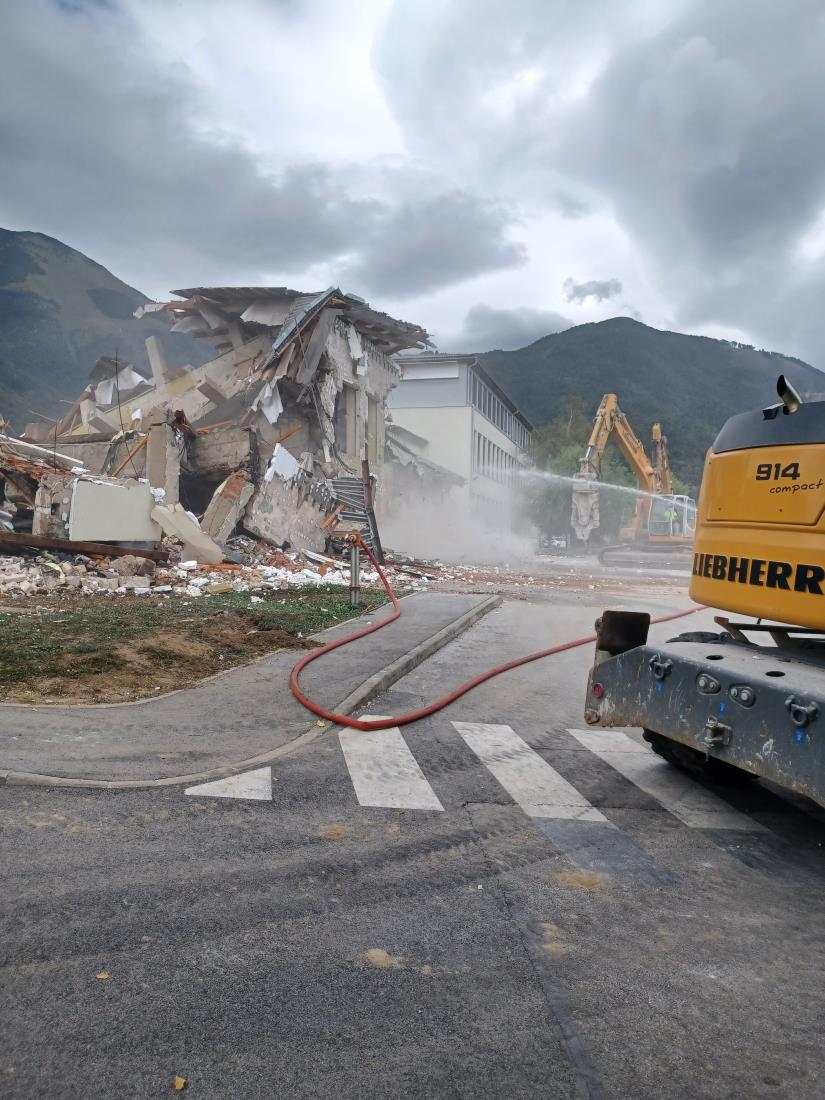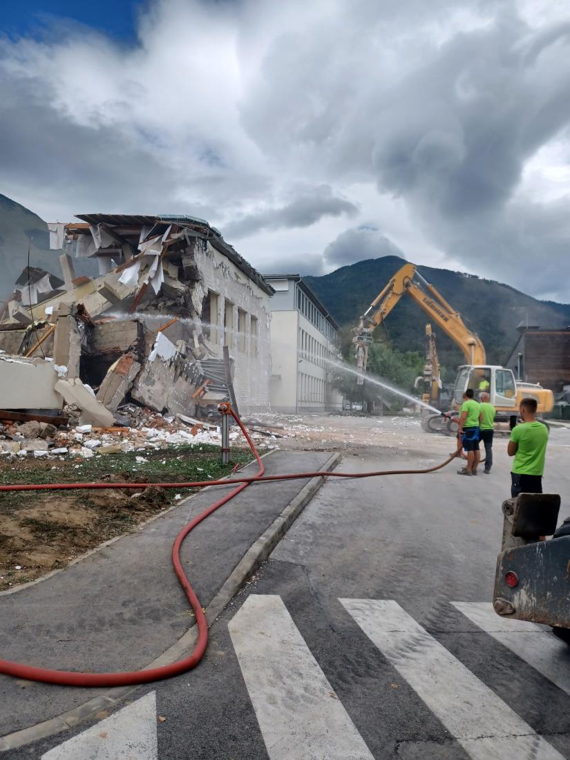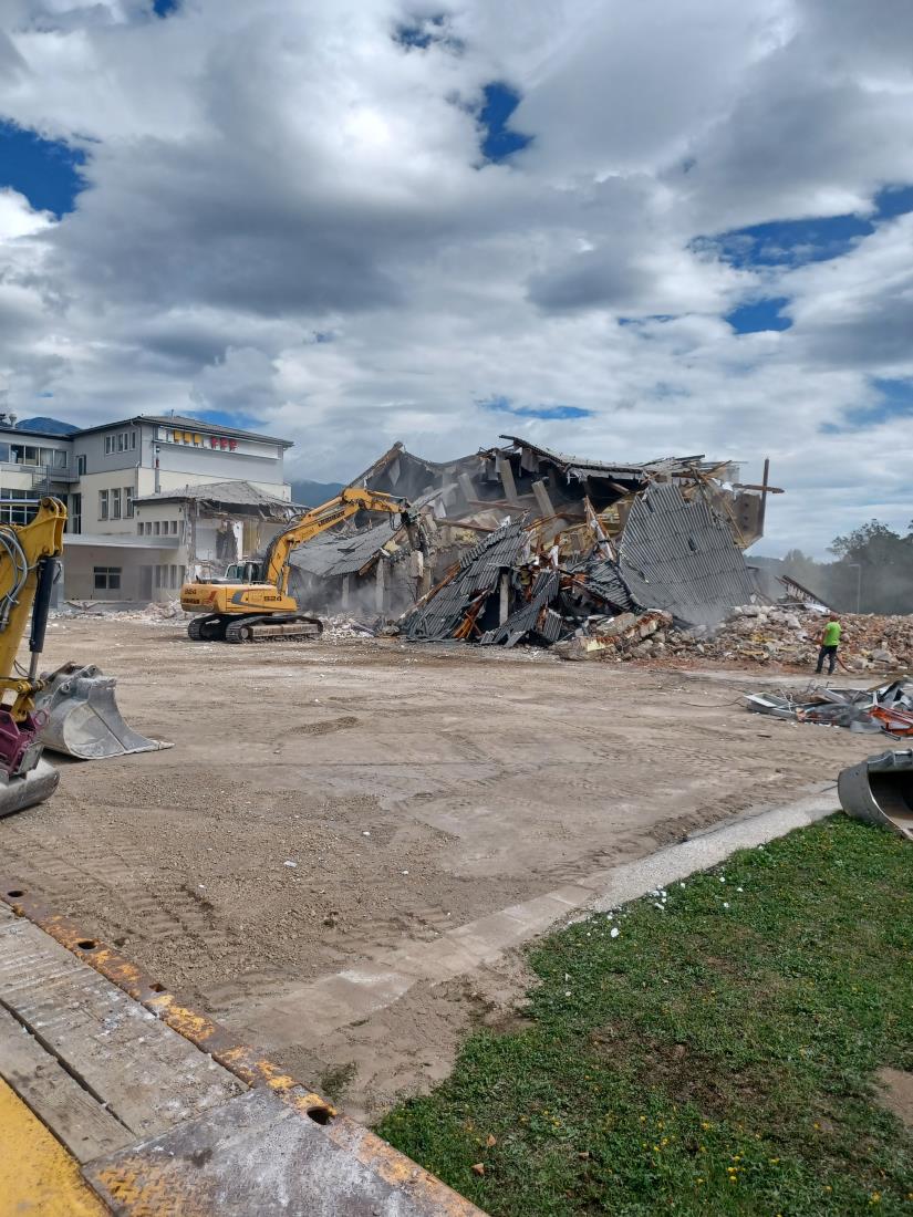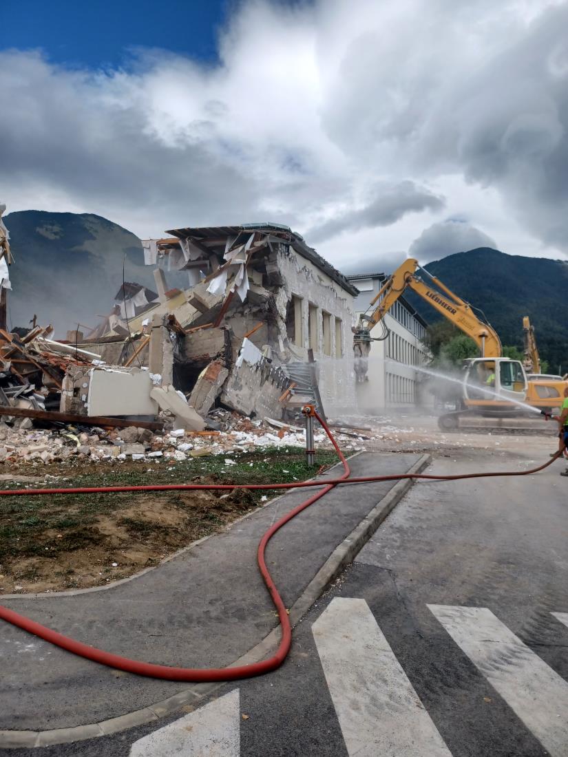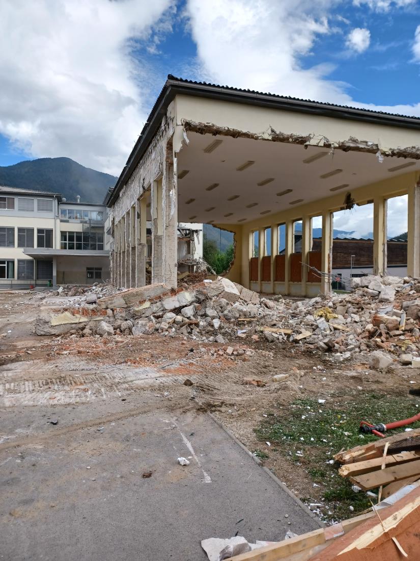 Včeraj je pogodbeni izvajalec porušil telovadnico pri šoli. Sledi odvoz ruševin, zato bo nekoliko povečan promet s kamioni skozi naselje Preddvor. Do 31. avgusta bodo dela zaključena.