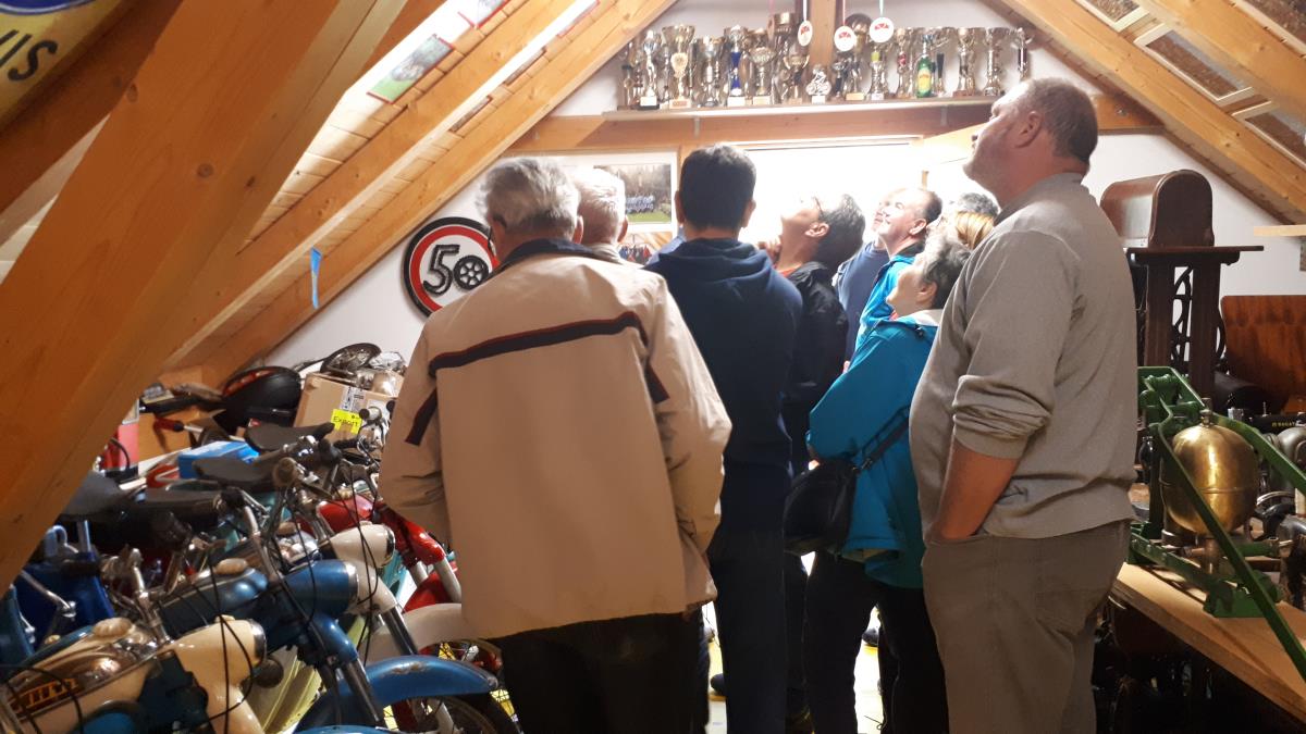 Oče Lončar in njegov sin Jani sta nam razkazala 25 let star muzej na 2000 kvadratnih metrih s štirimi lesenimi poslopji, v katerem smo si ogledali tesarsko, mizarsko krojaško, gospodinjsko orodje, stare motorje, traktorje, smuči, itd.