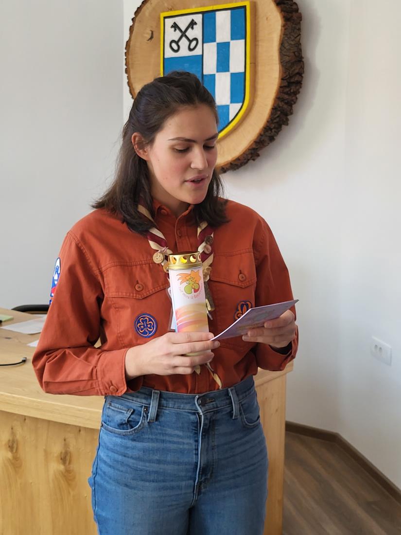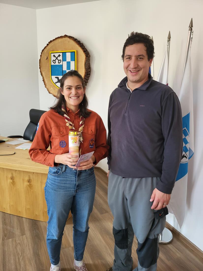 Tudi letos so preddvorski skavti županu prinesli luč miru iz Betlehema. Letošnje geslo je Vstani in sveti!