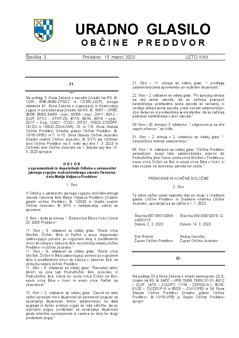 Uradno glasilo Občine Preddvor - Številka 3/2023