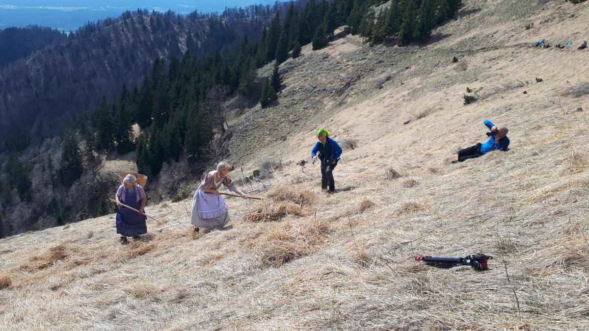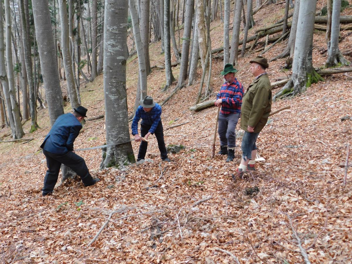 Minuli konec tedna smo posneli prve igrane prizore. Jera in Lojzka sta občudovali, kako globok je G'ru in po pobočjih grabili starico za modroce, Nežka pa je stricu Vorancu zaupala skrivnosti svojega srca. Možakarji so izkusili golcarijo, kakršne se spominjajo le še najstarejši lastniki gozdov. Janez Šenk, Strnišev iz Nove vasi nam je – kot že že marsikdaj - povedal in pokazal, kako se je delalo včasih. Tokrat je že v dolini pomagal pri pripravi orodja, v gozdu pa je, kot bi se povrnil v mlade dni, poprijel za amerikanko.
