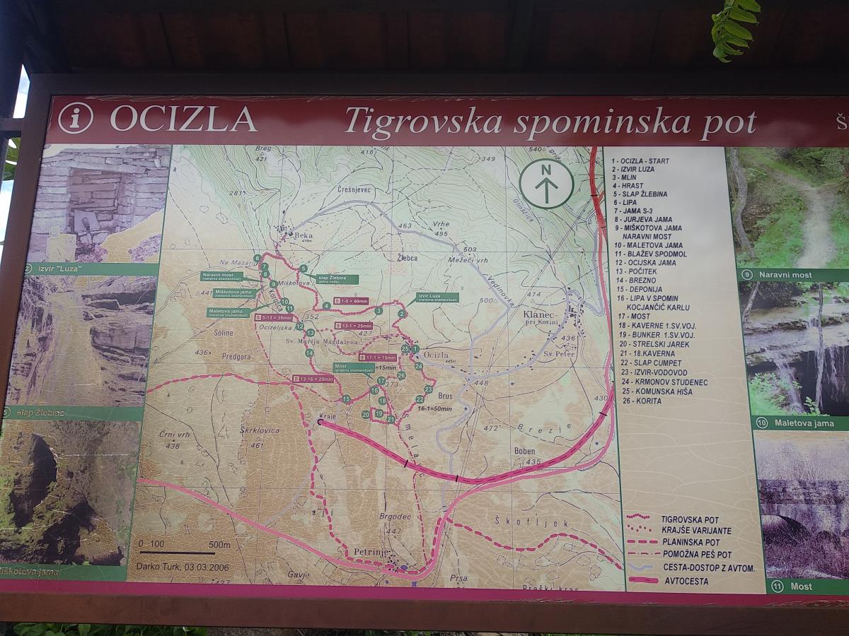 S kombiji smo se zapeljali po avtocesti do izvoza Kozina in nato proti vasici Ocizla. Podali smo se po Tigrovski krožni poti, ki je posvečena protifašistični organizaciji TIGR pred drugo svetovno vojno in danes povezuje vasi Ocizla in Beko. Po drugi svetovni vojni je bila pot pozabljena, v samostojni Sloveniji so jo ponovno obudili v spomin. Pot vodi po slikovito čarobnem kraškem svetu. Občudovali smo številne izvire, slapove, potoke, tolmune, jame, brezna, navdihujočo zeleno rastlinje in cvetje ob poti. »Stari hrast«, Miškova jama, Maletova jama, krmonov studenec, Ociška jama-Korošica, Jurjeva jama, Lipa na Mazarju, Slap v Žlebini, Stopničasti slap je le nekaj čarobnih točk na poti. Po zelo dobro označeni poti so usmerjale rumene oznake. 6 km poti s 120 metri višinske razlike je primerna prav za vsakogar, sami pa si jo lahko tudi skrajšate ali podaljšate. Večina se je sprehodila po srednji dolžini, nekaj si jih je izbralo krajšo pot.