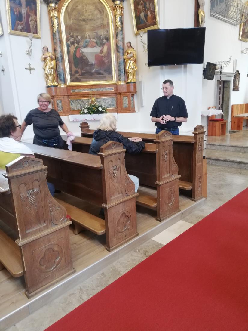 Tu nas je že čakala direktorica Zavoda za turizem Preddvor Ernesta Koprivc, ki je z nami nadaljevala pot do Preddvora, najprej preko polja do Visokega in naprej ob reki Kokri do znamenite cerkvice sv. Lenarta na Bregu pri Preddvoru, ki jo je predstavila Ernesta Koprivc. Njena največja znamenitost je kasetiran strop in freske. Po poljski poti smo prišli do farne cerkev sv. Petra v Preddvoru. Pozdravil nas je preddvorski župnik Pavel Okoliš. Predstavil je zgodovino cerkve, ki se prvič omenja v letu 1154. V času turških vpadov je bila zgradba dodatno utrjena. Iz tega obdobja se je ohranil zvonik iz leta 1505, ki ima strelne line in del tabornega obzidja. Sedanjo baročno podobo je župnijska cerkev dobila leta 1751. Cerkvena notranjost je opremljena v baročnem slogu. Zanimivi sta sliki Zadnja večerja in slika sv. Petra, ki ju je naslikal Janez Wolf v 19. stoletju. Župnik nas je tudi prijetno presenetil s pogostitvijo.