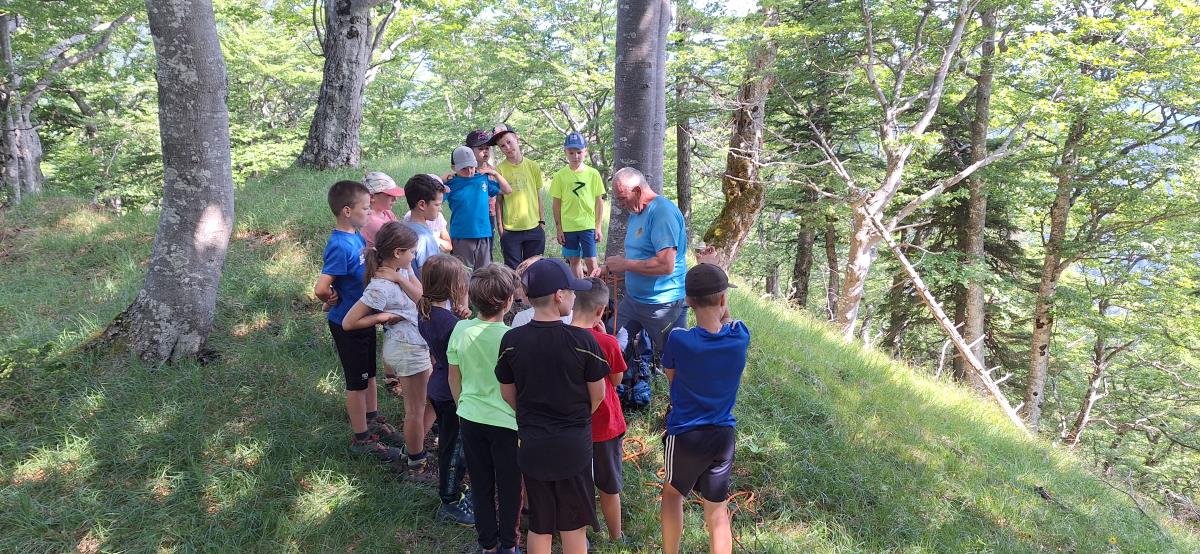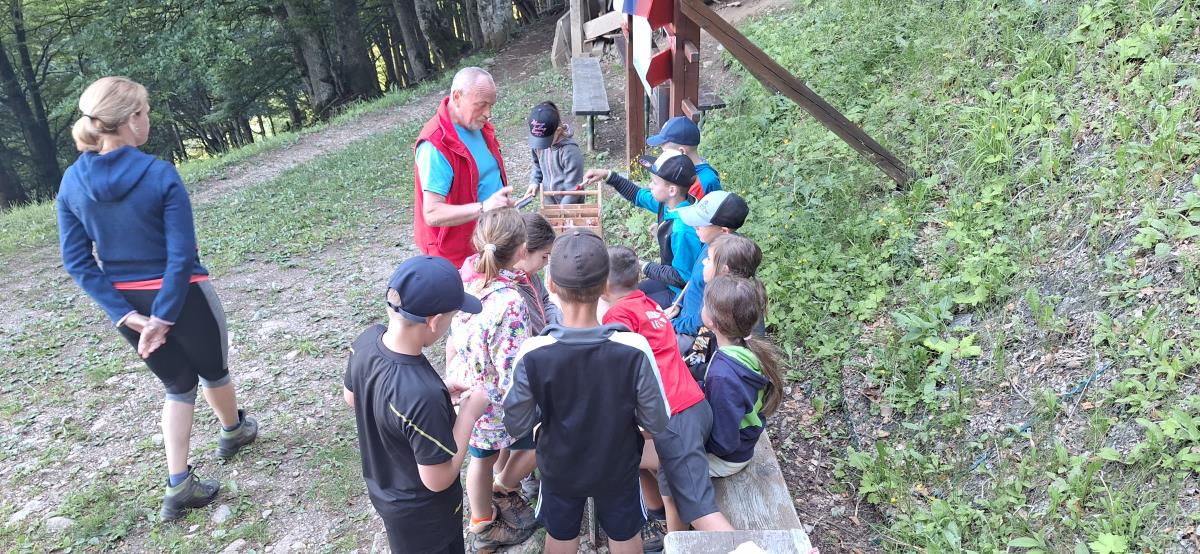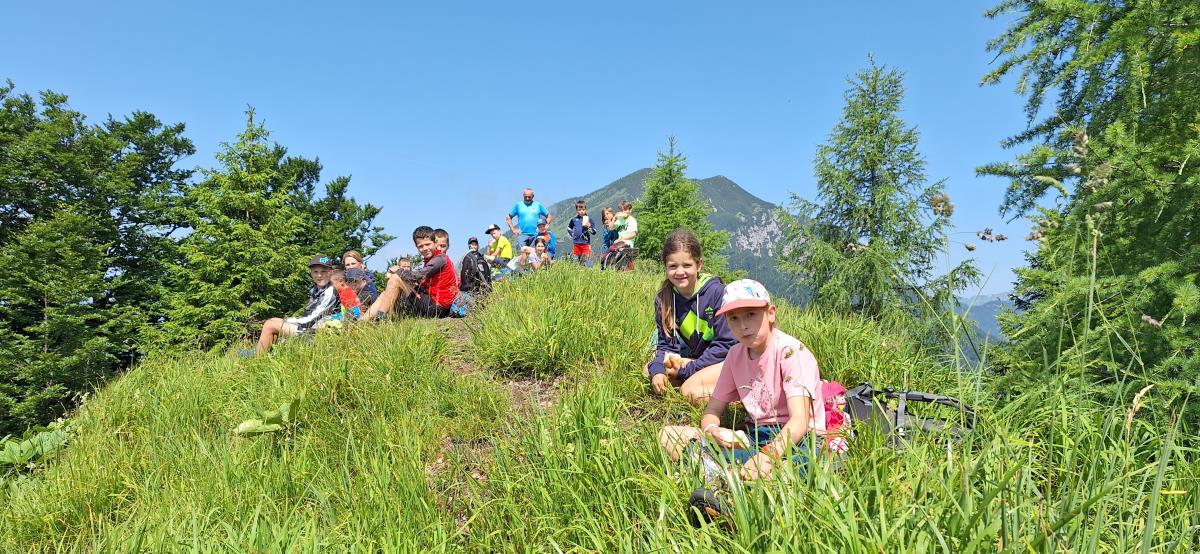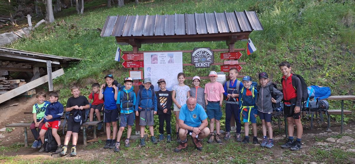 Potem ko nam je v načrtovanih pomladnih terminih izvedbo preprečilo deževno vreme, smo letošnji mini tabor uspešno izpeljali v prvem tednu poletnih počitnic. 13 zavzetih mladih planincev krožka Gremo v hribe OŠ Matije Valjavca Preddvor z mentoricama Romano in Petro se je v četrtek, 29. junija popoldne povzpelo do Zavetišča v Hudičevem borštu, kjer sta nas gostoljubno sprejela Rajko in Marjeta Fende z vnučkoma, ki sta se hitro priključila vrstnikom.