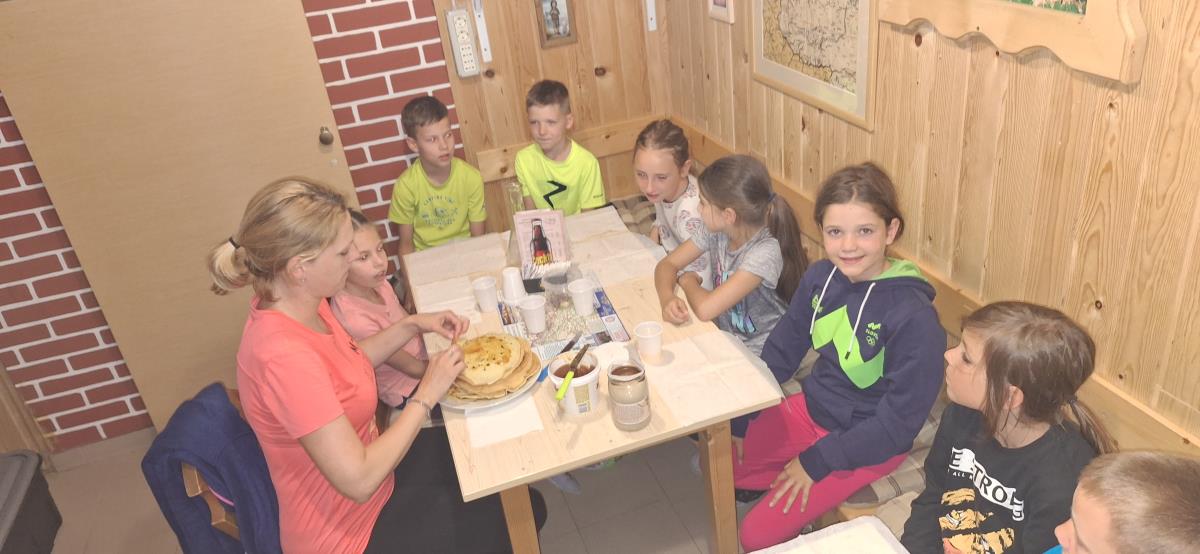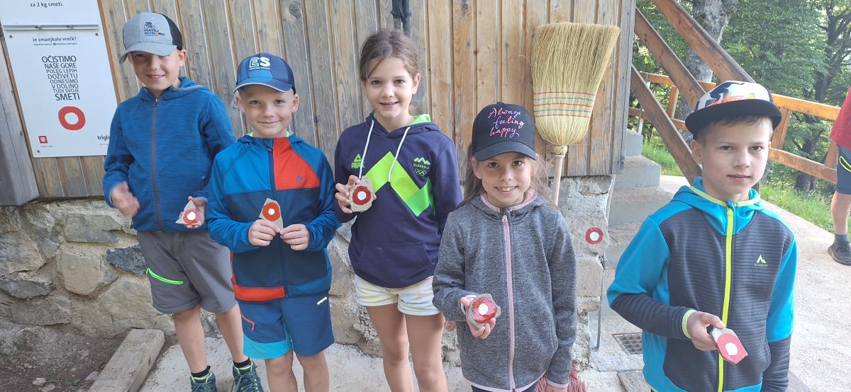 Po kratkem počitku in namestitvi v sobe smo imeli markacijsko delavnico: oskrbnik Rajko je mladini predstavil delo markacistov in pomen rednega urejanja planinskih poti, nato pa je vsak na kamenček naslikal svojo markacijo. Za večerjo smo si - kot vsakokrat doslej - spekli palačinke, glavna mojstra zanje sta bila tokrat Enej in Žiga. Z večernim poglavjem planinske šole smo osvežili znanje o varnosti pri hoji v hribe, o pripravah na turo ter o planinskem bontonu. Navdušenje ob spanju v planinski koči je še povečalo občudovanje lučk v temni dolini daleč pod nami.
