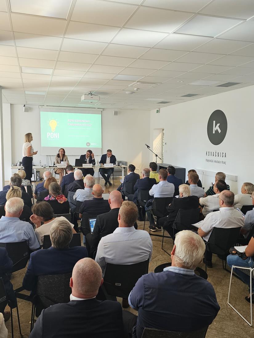 Taja Nograšek iz Regionalne razvojne agencije Gorenjske, BSC Kranj je prisotnim članom predstavila aktivnosti in rezultate projekta PONI GORENJSKA - Podjetno nad izzive, ki se je v podjetniškem inkubatorju Kovačnica izvajal v letih 2019–2023. Skozi štirimesečno podjetniško usposabljanje je na Gorenjskem šlo 80 potencialnih podjetnikov, od tega jih je 39 že odprlo svoje podjetje.