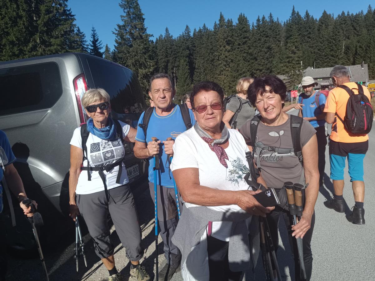 V torek, 3. 10. 2023 smo se tudi tokrat s tremi kombiji in vodnikom Janezom Planincem odpeljali proti Pohorju do jase, kjer stoji koča na Pesku na višini 1386 metrih. Ob prihodu na izhodišče nas je po dvourni vožnji pričakalo sladko darilo Metke in Malči za njun rojstni dan.