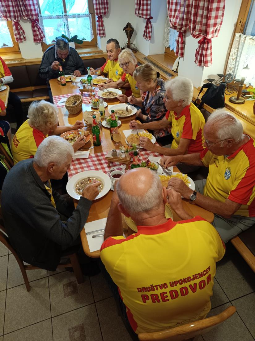 Po jutranji vožnji do Adergasa in naprej v Šenčur smo kolesarjenje zaključili v Hotemažah v gostilni Logar, ki se ga je udeležila tudi predsednica DU Preddvor Marija Velikanje.