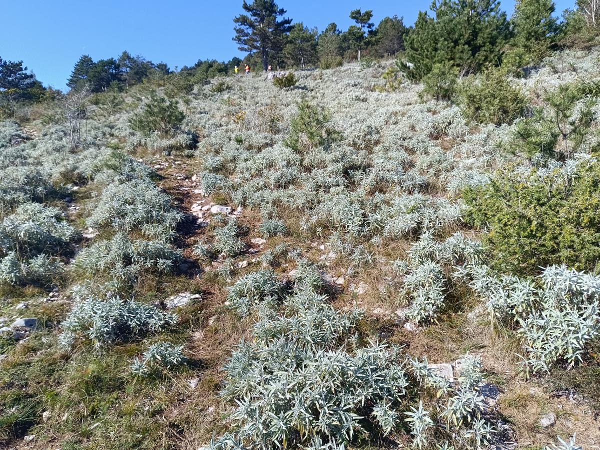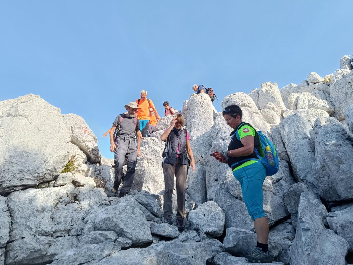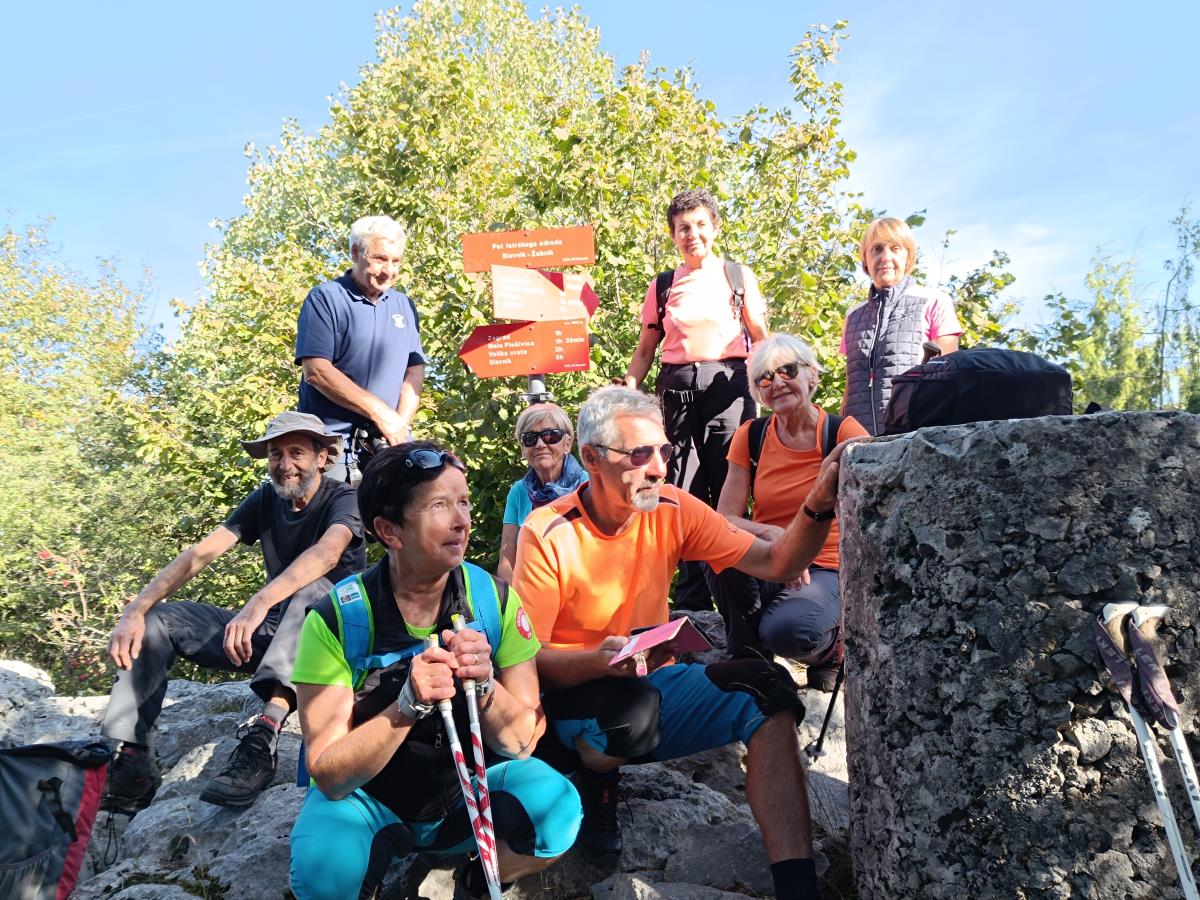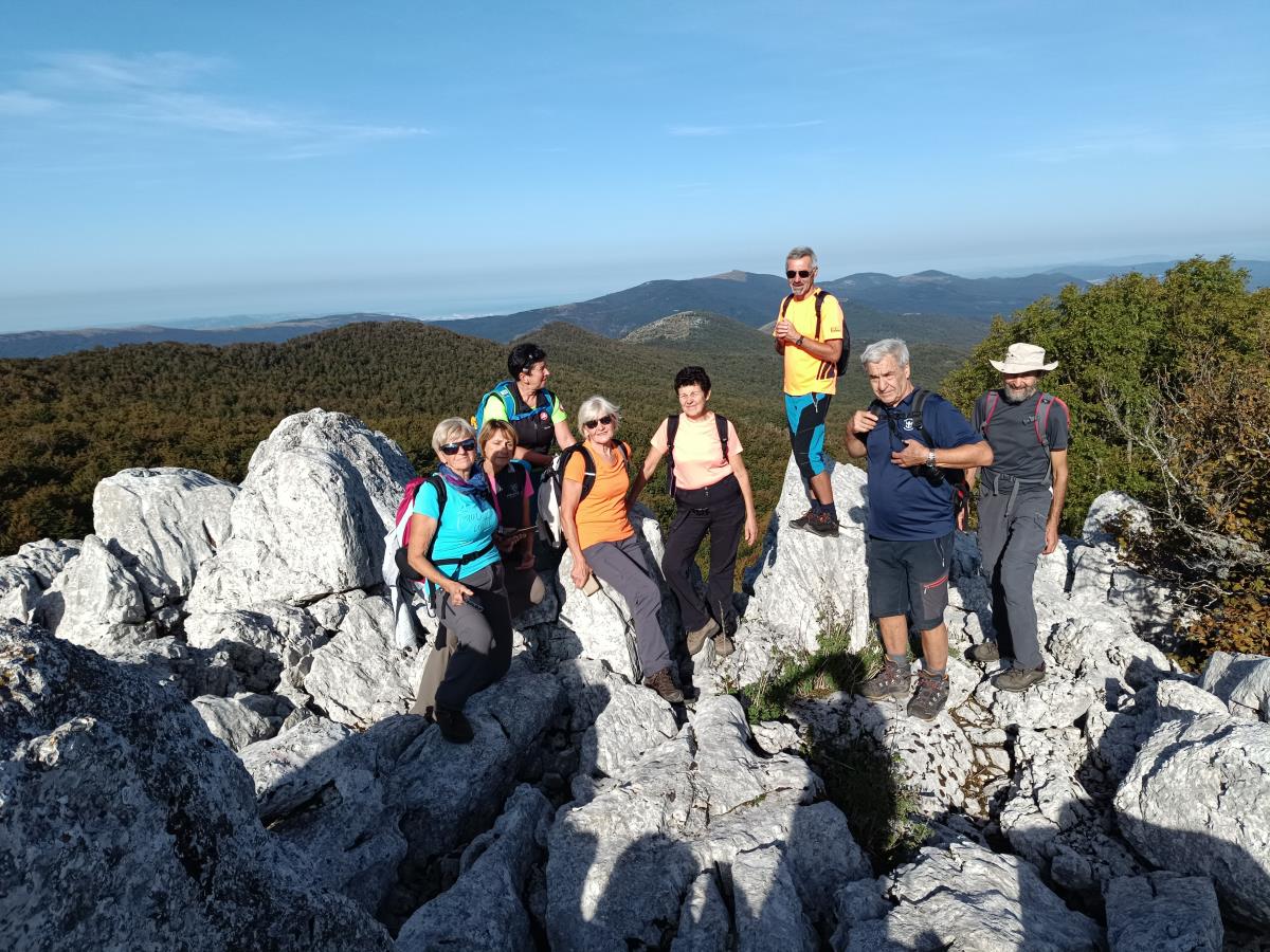 S kombijem smo se odpeljali do Čičarije, točneje vasi Golac in parkirali še malo višje pred vasjo Zagrad. Pot nas je peljala skozi vas navkreber do prvega 1056 m visokega neporaščenega vrha Ostriča/Žabnika. Naš drugi vrh je bila Medvižica s 1081 metri, kjer smo imeli občutek, kot bi bili v visokogorju skalnatih Julijcev. Pravo plezalno doživetje! Bili so še lepši razgledi, a mi smo nadaljevali naprej po gozdu na tretji in obenem najvišji vrh slovenske Istre, 1083 metra visoki Razsušici. Tu smo si privoščili malico in počitek za nadaljnjo pot. Sledil je spust proti Zagradu in kljub obnovljenim markacijam, smo jih ponekod iskali, saj smo se namenili povzpeti naprej na Malo Plešivico z 953 metri, kjer so se nam pokazali čudoviti razgledi. Spet je sledil spust do prevala Velika vrata in vzpon na Veliko Plešivico. Pred nami se je pokazal hrib poraščen z žajbljem. Seveda smo takoj sklenili, da ga ob povratku naberemo za zimsko lekarno. Poraščenost je spet prikrivala ozko stezo, a vseeno smo kmalu zagledali vrh Velika Plešivica z 908 metri, ki je, zanimivo, po nadmorski višini nižji kot Mala Plešivica. Ob spustu smo kot raznobarvne pike nabirali žajbelj in sestopili na prevalu Velika vrata. Ostala je le še pot v dolino do kombija.