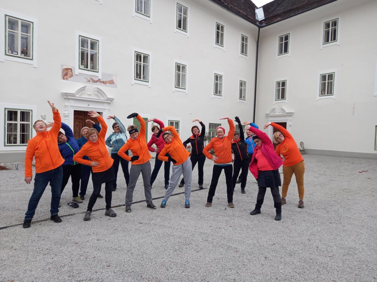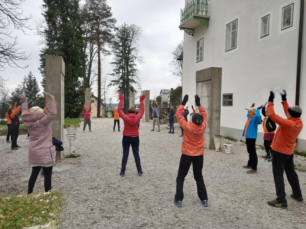 Vsako jutro se člani srečujemo na svežem zraku in izvajamo vaje po metodi „1000 gibov“.