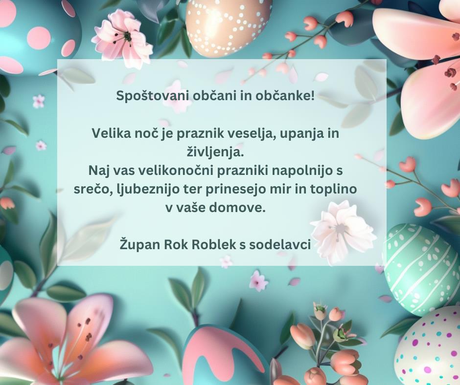 Naj vas velikonočni prazniki napolnijo s srečo, ljubeznijo ter prinesejo mir in toplino v vaše domove.
