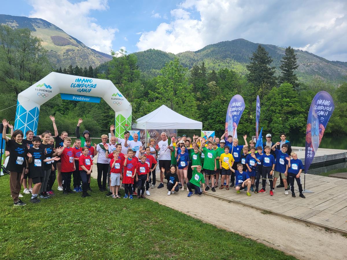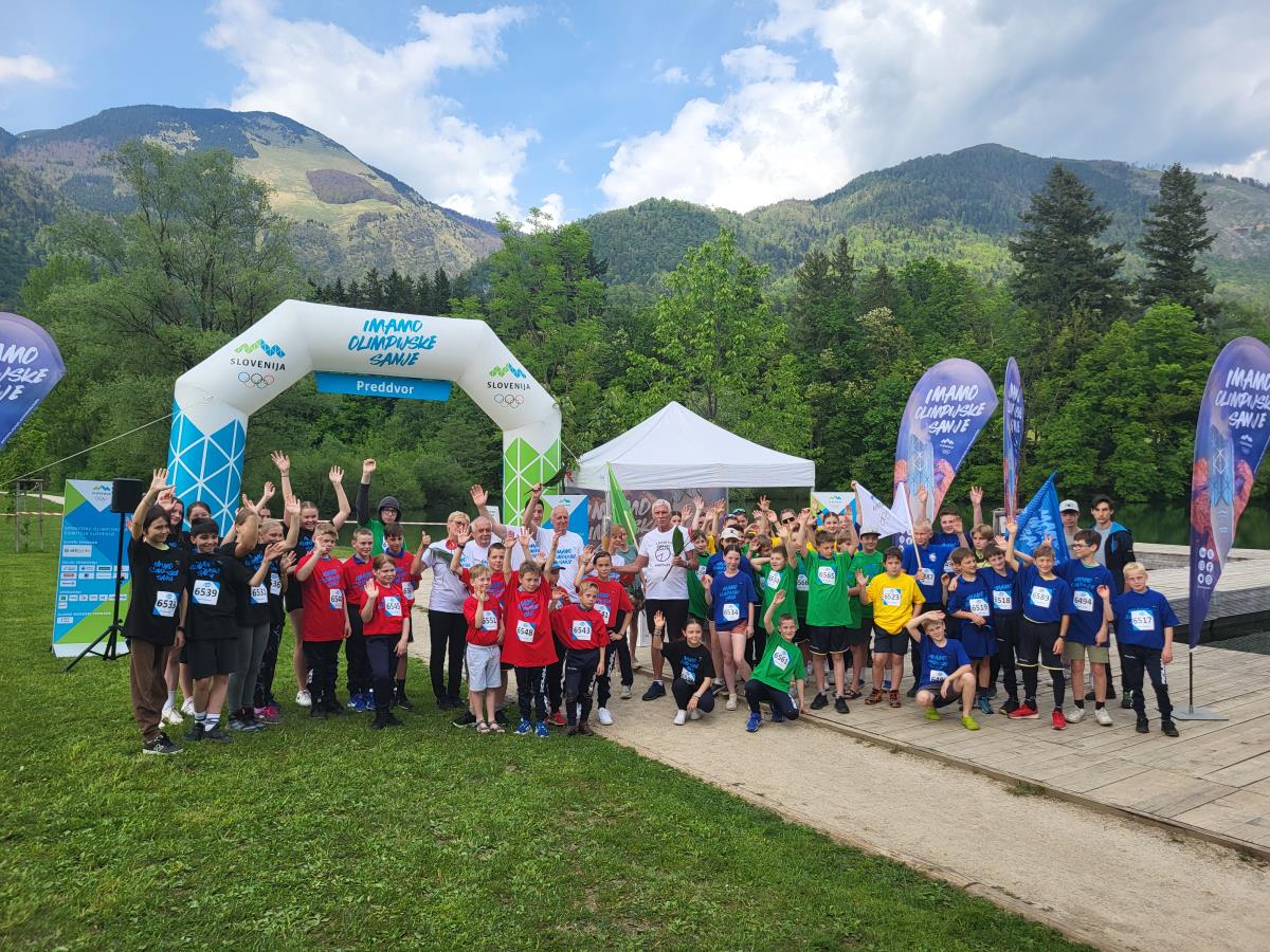 Za poseben pozdrav so poskrbeli otroci iz različnih športnih klubov ter učenci OŠ Matije Valjavca Preddvor, ki so s sklenjenimi rokami oblikovali olimpijske kroge, oblečeni v barvah olimpijskih krogov.