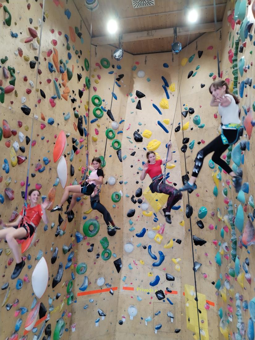 Z najmlajšo skupino smo se odpravili v že dobro poznani plezalni center Bricalp, naslednji teden pa smo s starejšo obiskali Plezarno v Britofu. Ogrevanje na obeh lokacijah je potekalo na nizkih boulder stenah, glavna atrakcija pa je bilo plezanje visokih športnoplezalnih smeri z varovanjem z vrvjo. Otroci so pri tej dejavnosti pokazali veliko poguma.